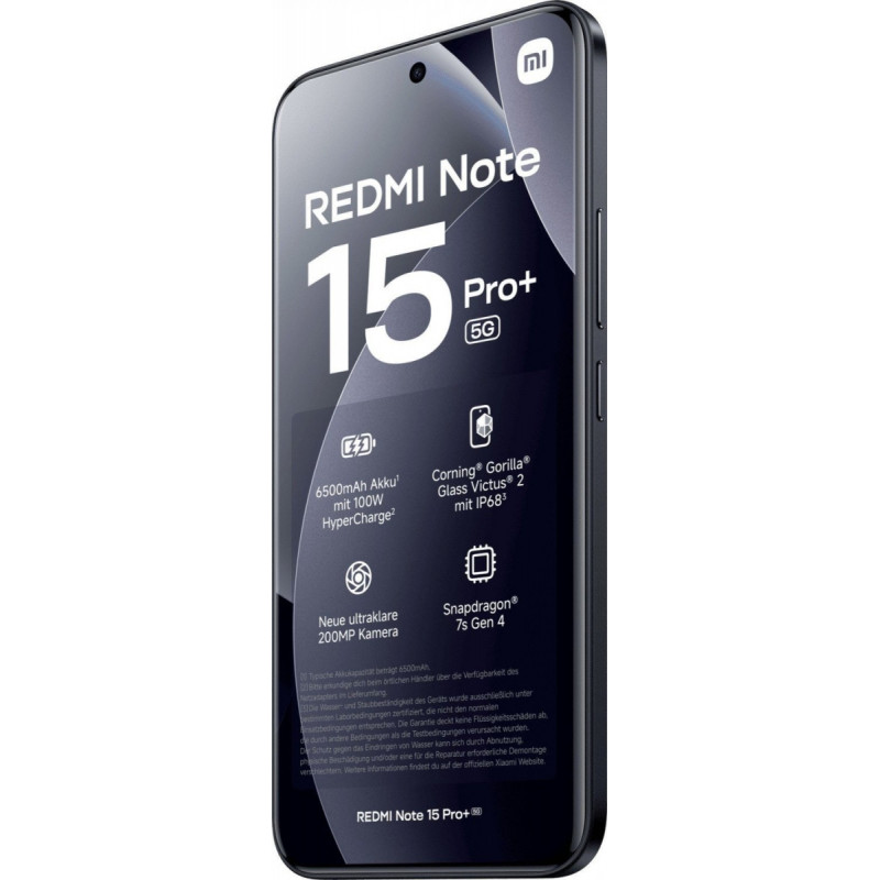 Сочетание стекла Gorilla Glass Victus 2, прочного каркаса и точной обработки придает Redmi Note 15 Pro+ 5G элегантный вид и высокую механическую прочность. Телефон соответствует сертификатам IP68 и IP69K, поэтому он защищен от воды, пыли и струй под давлением и выдерживает даже неаккуратное обращение. Устойчивость к падениям с высоты до 2.5 метра подтверждает, что это не просто дизайнерский предмет, а надежный инструмент для повседневного использования.